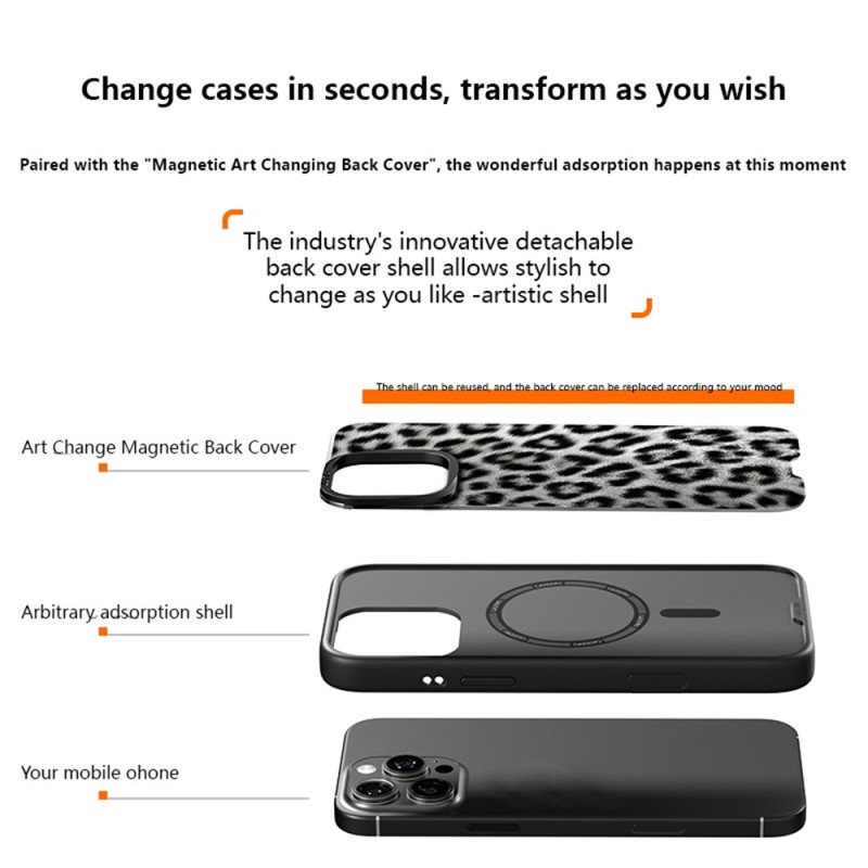 Descubra nuestra innovadora funda para iPhone 15 Pro con placas traseras magnéticas intercambiables. Esta versátil funda, que ofrece una protección superior contra impactos, combina un marco de TPU flexible con una parte trasera acrílica duradera. Compatible con la carga MagSafe, se integra a la perfección en el ecosistema magnético.
