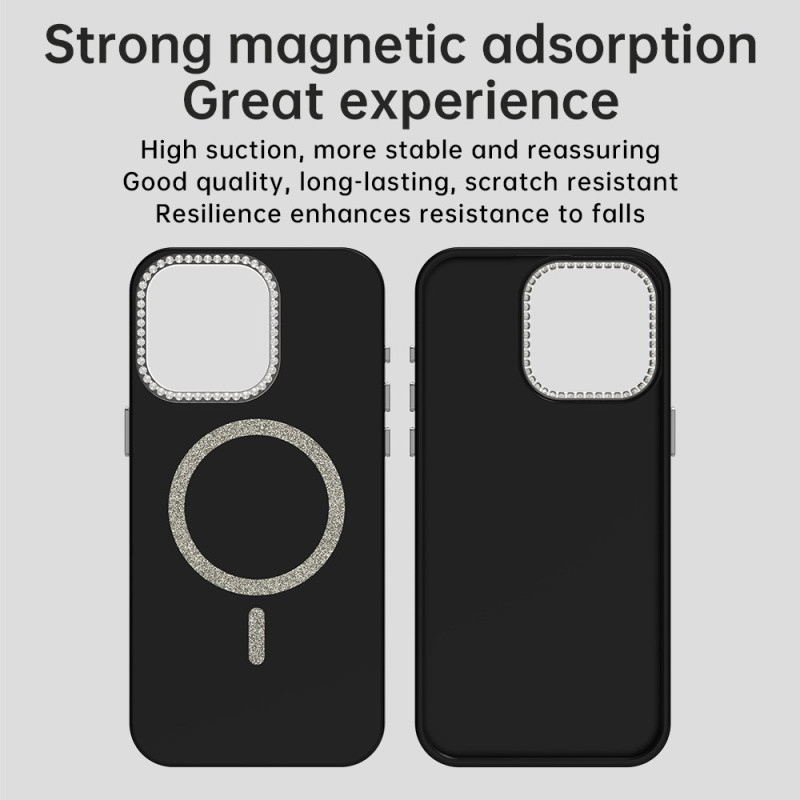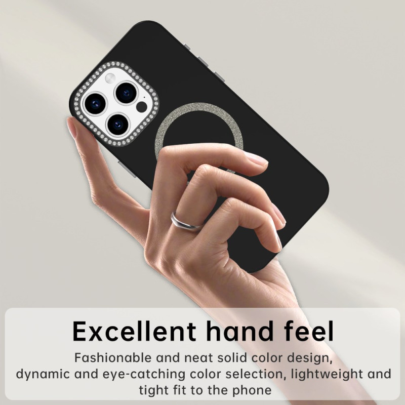 Descubre nuestra elegante funda para iPhone 15 Pro, que combina estilo y protección. Compatible con MagSafe, ofrece una carga inalámbrica eficiente. Su marco con lente de strass aporta un toque lujoso, mientras que su acabado brillante añade glamour. Fabricada con TPU y PET de alta calidad, ofrece una protección duradera contra arañazos e impactos.