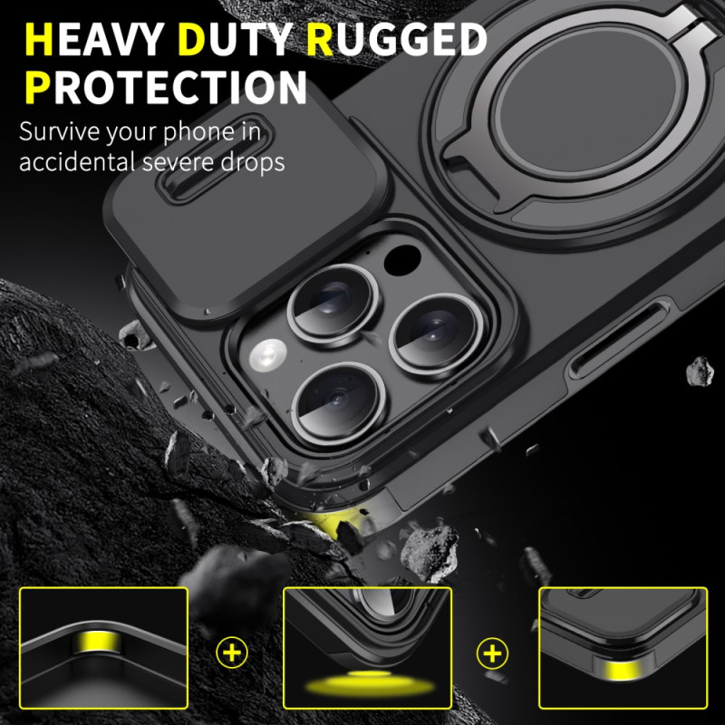 Descubra nuestra innovadora funda para iPhone 15 Pro. Con tapa deslizante para el objetivo, soporte giratorio y compatibilidad magnética, ofrece una protección óptima y una funcionalidad mejorada. Fabricada en TPU y PC, esta funda combina durabilidad y estilo para una experiencia de uso excepcional.