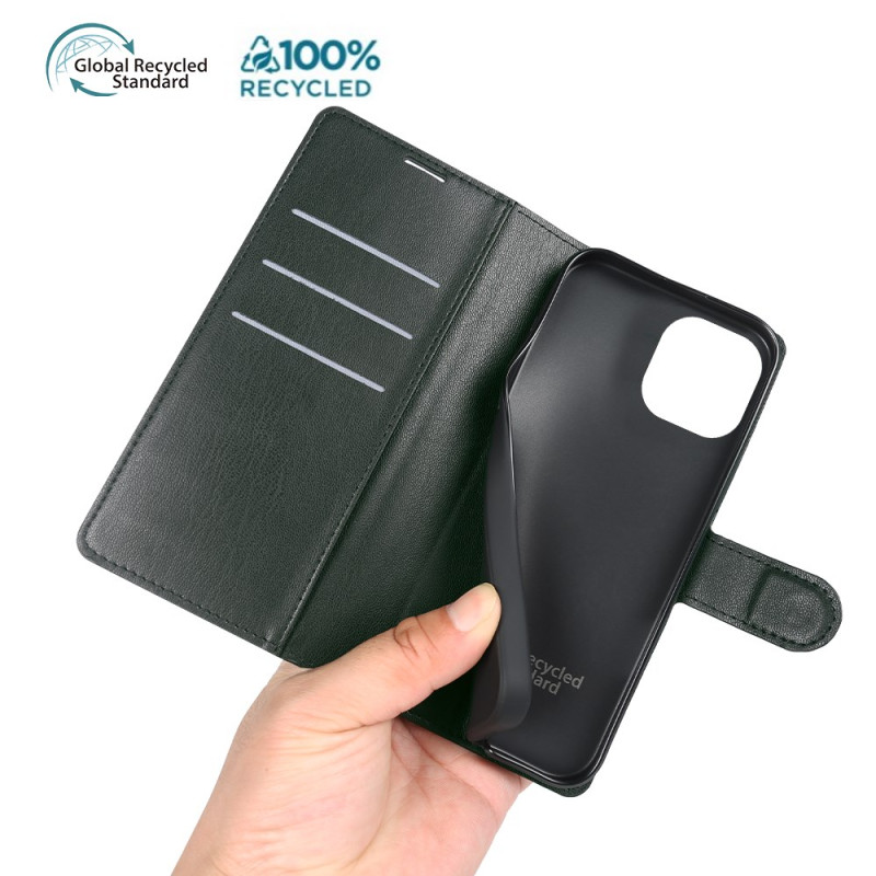 Descubra nuestra funda cartera ecológica y multifuncional para iPhone 15. Fabricada con materiales reciclados, ofrece una fina protección a la vez que incorpora funciones prácticas como un soporte integrado, ranuras para tarjetas y un cierre magnético. Ideal para combinar estilo, practicidad y respeto por el medio ambiente.