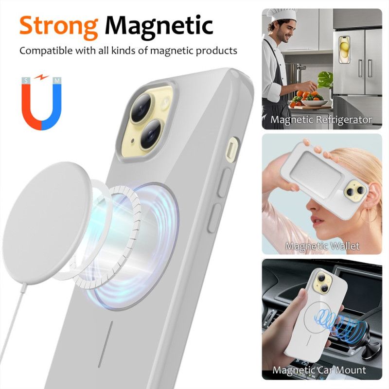 Descubra nuestra funda magnética para iPhone 15, compatible con MagSafe. Fabricada en TPU de primera calidad, ofrece una protección óptima contra golpes y arañazos. Con su anillo magnético integrado, se adapta perfectamente a cargadores inalámbricos y bases magnéticas. La funda también incluye una práctica colgante de mano para un transporte fácil y seguro.