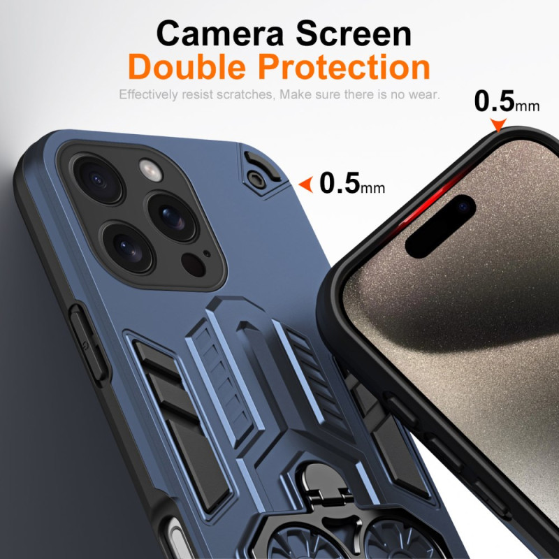 Descubre nuestra robusta funda para iPhone 15 Pro, diseñada para ofrecer una protección óptima. Con un versátil soporte anular, ofrece una defensa total contra golpes y arañazos. Su diseño innovador combina durabilidad y funcionalidad para un uso diario sin preocupaciones.