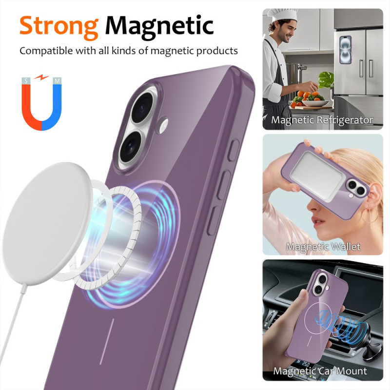 Descubre nuestra funda magnética de gama alta para iPhone 16 Plus. Fabricada en TPU de primera calidad, ofrece una protección óptima contra golpes y arañazos. Compatible con MagSafe, permite una cómoda carga inalámbrica y un fácil acoplamiento a soportes magnéticos. Con su borde elevado y la colgante de mano incluida, tu teléfono estará protegido y será fácil de transportar.