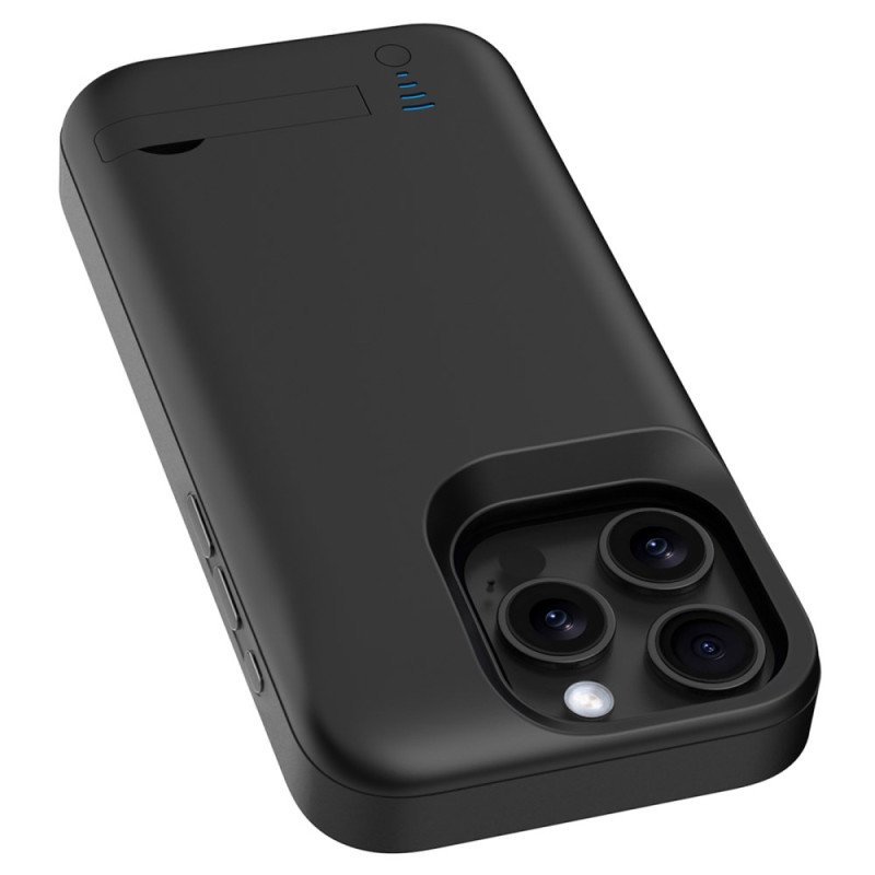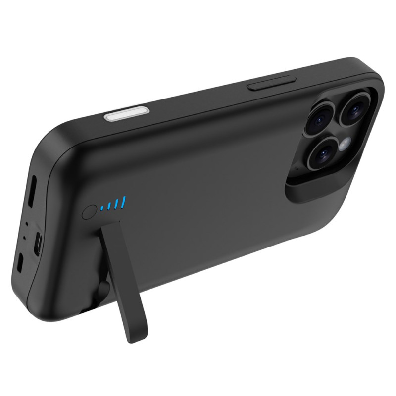 Esta funda con batería de 6000 mAh ofrece una mayor autonomía para el iPhone 16 Pro Max al tiempo que incorpora un práctico soporte para manos libres. Su ajuste preciso permite acceder a todas las funciones del teléfono sin quitar la funda. Los indicadores LED muestran claramente los niveles de energía, y un botón inteligente optimiza el uso de la batería integrada. Fabricada con materiales resistentes, combina protección y carga en un solo accesorio. Su circuito integrado reduce el riesgo de sobrecarga, cortocircuito o sobrecalentamiento, para un uso diario seguro.