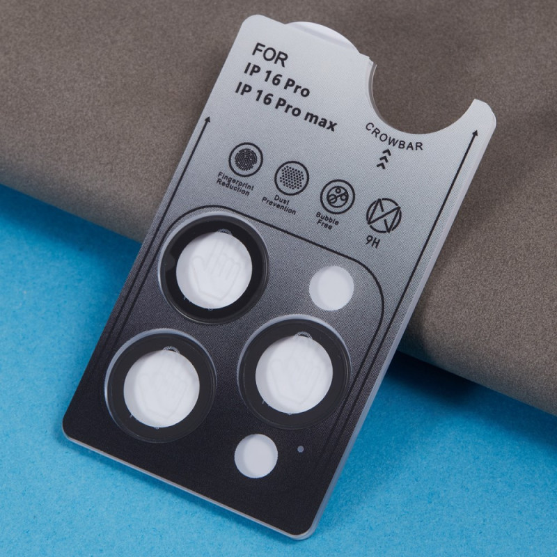Nuestro protector de lente para iPhone 16 Pro / 16 Pro Max está fabricado con cristal endurecido 9H y un marco metálico, ofreciendo una sólida protección contra arañazos e impactos.