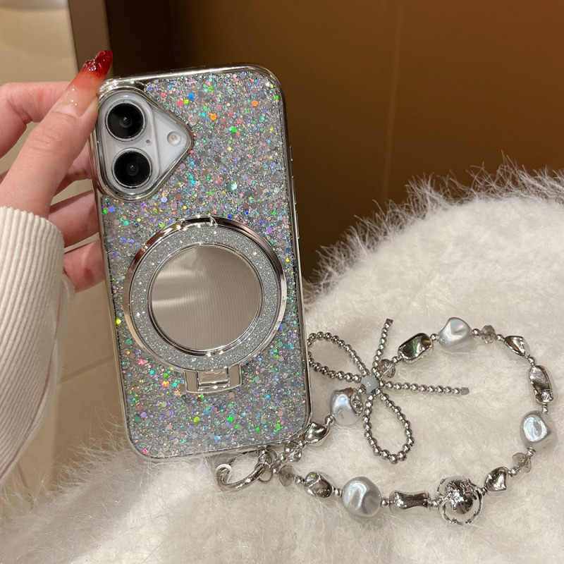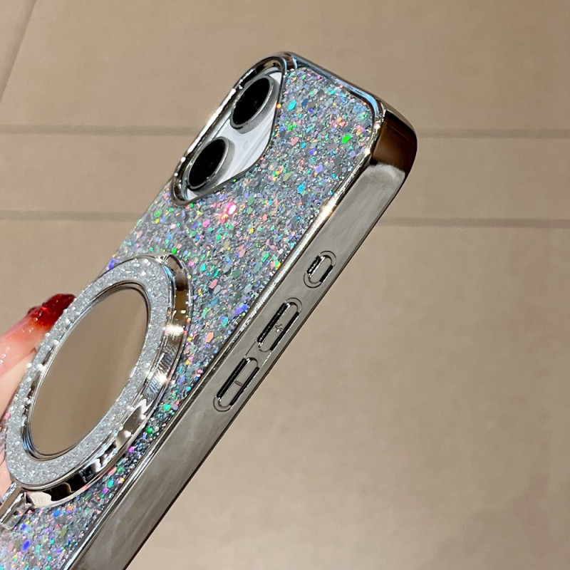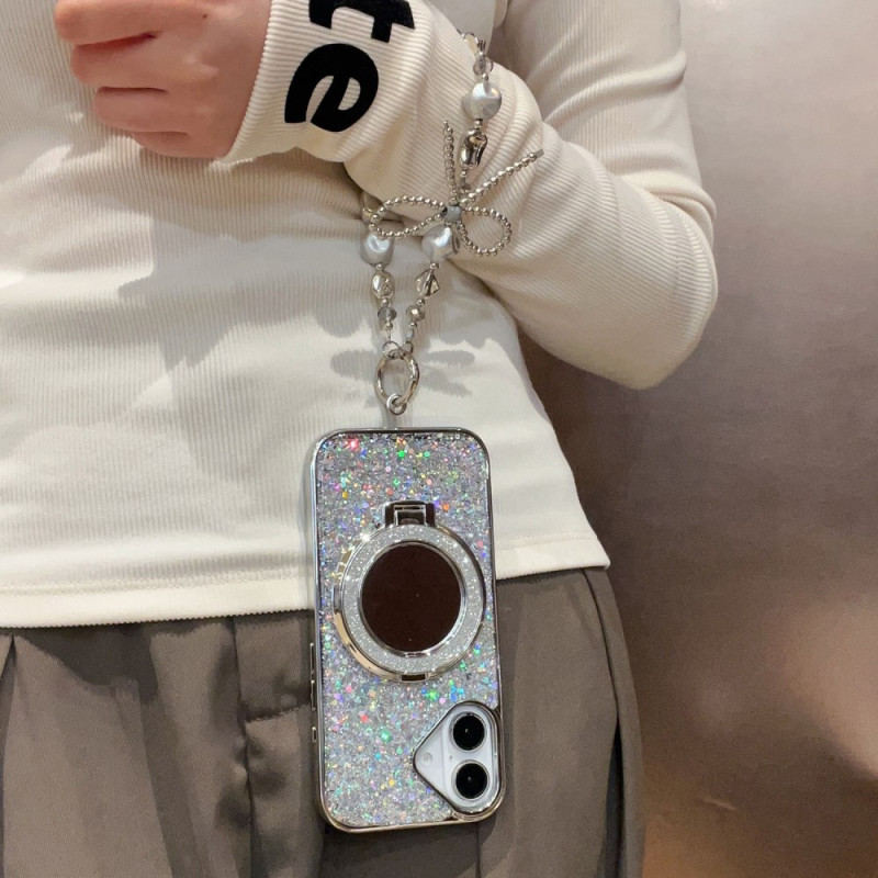 Découvrez notre élégant étui pour iPhone 16, alliant style et fonctionnalité. Doté d'une finition pailletée électroplaquée et d'un artisanat en résine, cet étui offre une protection robuste tout en servant de miroir de maquillage pratique. Le design compact avec une chaîne détachable assure une portabilité facile et ajoute une touche de sophistication à votre accessoire quotidien.