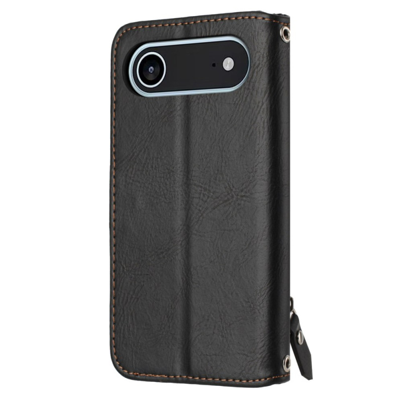 Práctica y elegante, la funda iPhone Air marrón de piel de PU incorpora un monedero completo y un bolsillo exterior con cremallera para llevar tus tarjetas, billetes y monedas con total seguridad. Su interior de TPU ofrece una protección fiable contra golpes y caídas, mientras que el cierre magnético mantiene la funda bien cerrada sin impedir el uso del soporte plegable integrado. Gracias a la apertura específica, puede responder a las llamadas sin abrir la solapa. Se suministra con una colgante de mano desmontable y combina estilo, practicidad y comodidad para un uso diario versátil.