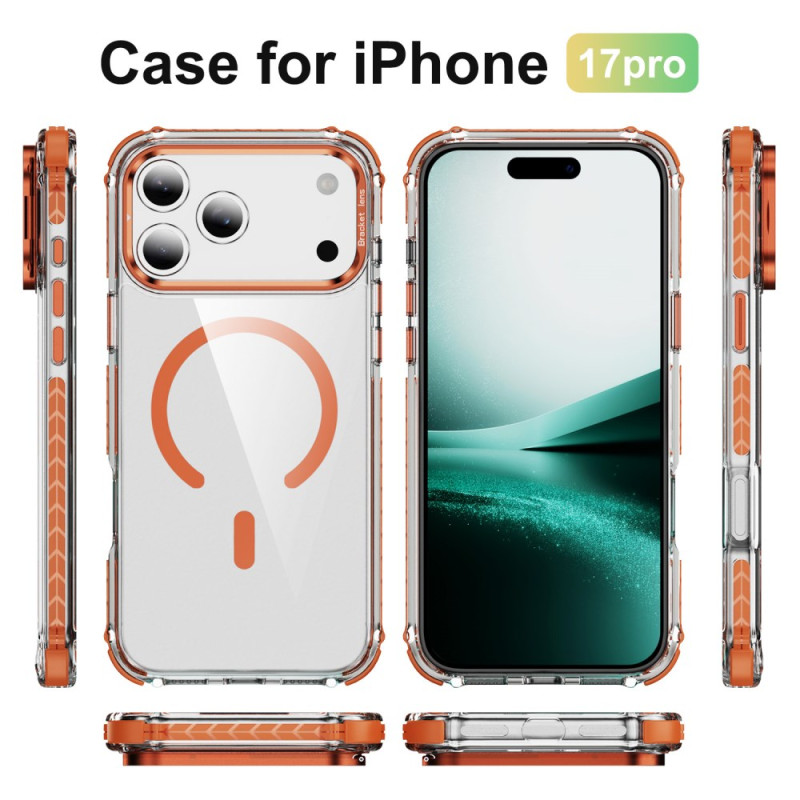 Con su diseño transparente y moderno, esta funda para iPhone 17 Pro protege eficazmente tu teléfono a la vez que realza su belleza. Fabricada con plástico y TPU de alta calidad, ofrece una resistencia óptima a los golpes y los impactos. La tapa metálica de la lente, que se convierte en soporte, te permite disfrutar de una experiencia manos libres ideal para ver vídeos o hacer videollamadas.