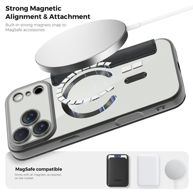 Con su estilo elegante y moderno, esta funda para iPhone 17 Pro combina piel de PU con textura de diamante y TPU resistente para una protección duradera y con estilo. Es compatible con MagSafe e integra imanes con tecnología de vena de CD para una carga inalámbrica rápida y estable. Su panel trasero transparente resalta el diseño original del teléfono, mientras que las ranuras integradas mantienen las tarjetas y los documentos de identidad seguros y protegidos. La tecnología RFID bloquea los escaneos no autorizados, protegiendo tus datos. Por último, el revestimiento galvánico de la cámara protege eficazmente las lentes de arañazos y roces.