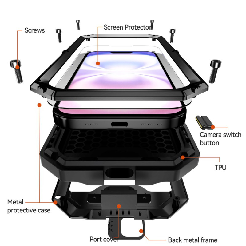 La protección para su iPhone 17 alcanza nuevas cotas, cubriendo cada milímetro, cada puerto y cada lente. Su armadura multimaterial incorpora una pantalla de cristal templado y una funda deslizante para la cámara, proporcionando un santuario inviolable para tu dispositivo. Con clasificación IP54, es a prueba de polvo y salpicaduras, lo que le permite usarlo con confianza en cualquier condición. A pesar de esta fortaleza, la funcionalidad sigue siendo primordial: el soporte manos libres se despliega para tus medios y la carga inalámbrica se realiza sin esfuerzo.