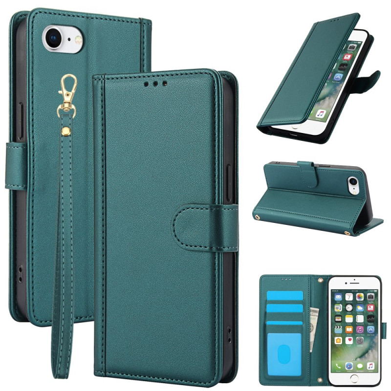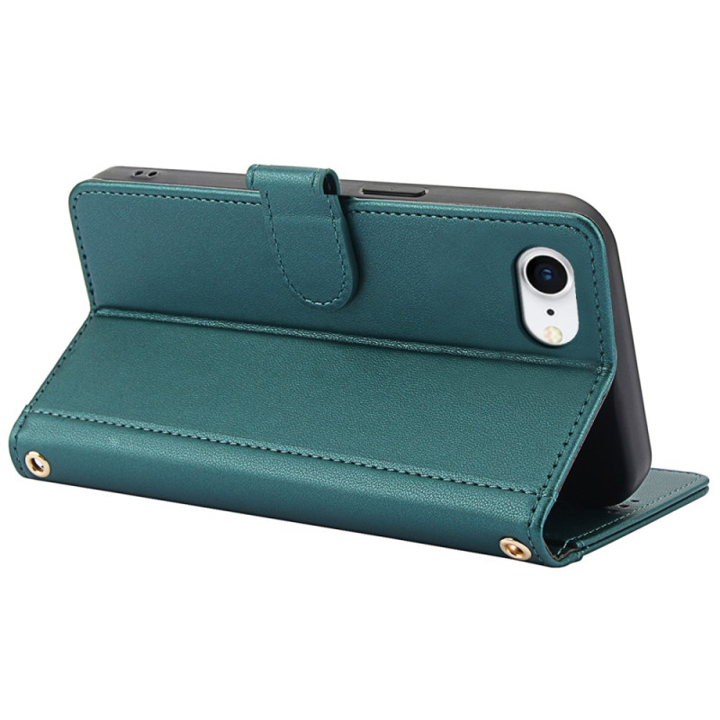 Descubra nuestra funda cartera de piel de PU para iPhone 16E. Con soporte integrado, ranuras para tarjetas y colgante