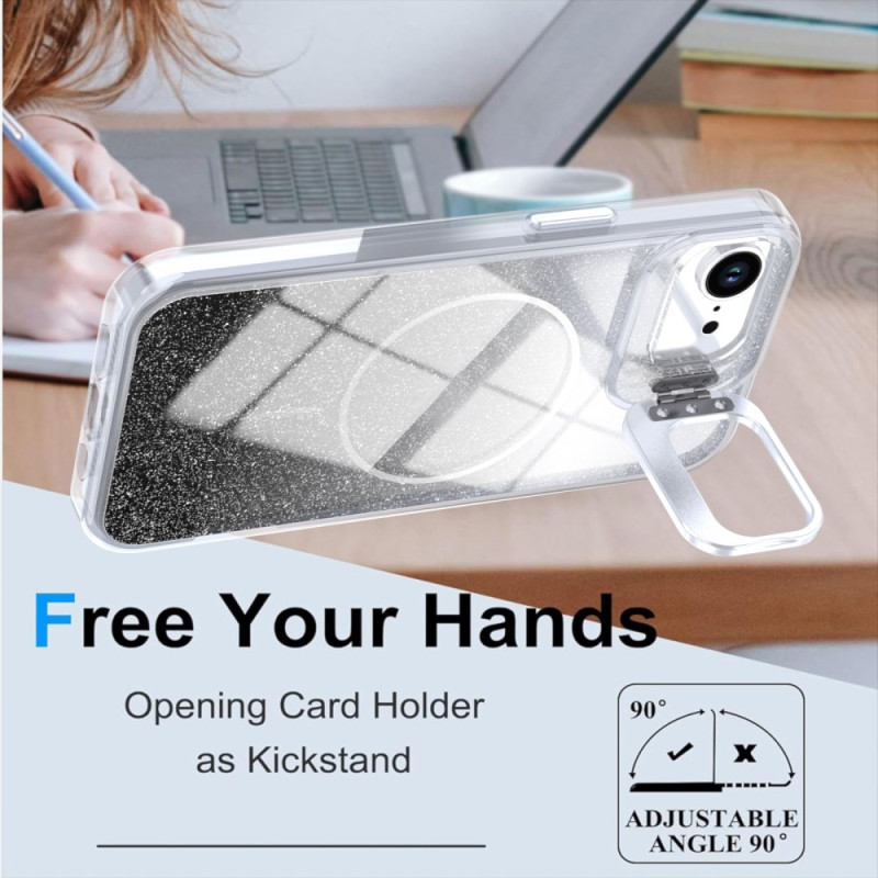 Découvrez notre coque magnétique à paillettes dégradées pour iPhone 17e / 16e, compatible MagSafe. Design élégant et scintillant, protection antichoc renforcée, et support pliable intégré pour un visionnage mains libres. Alliez style et sécurité au quotidien.