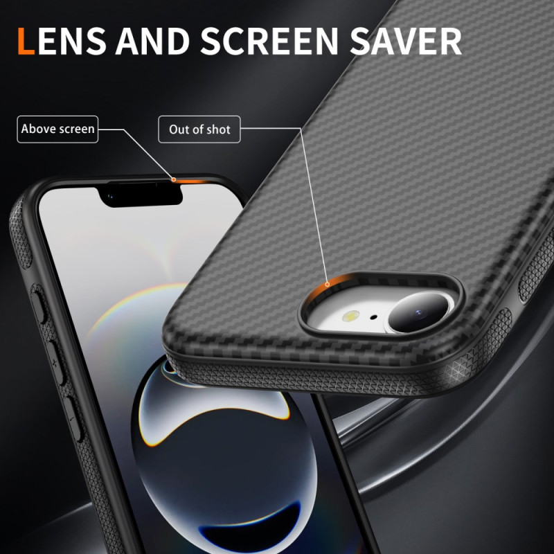 Protégez votre iPhone 17E / 16E avec élégance grâce à cette coque au toucher soyeux et à la texture fibre de carbone. Compatible MagSafe, elle offre une protection complète avec ses coussins d'air anti-choc et ses bords surélevés pour protéger l'appareil photo.