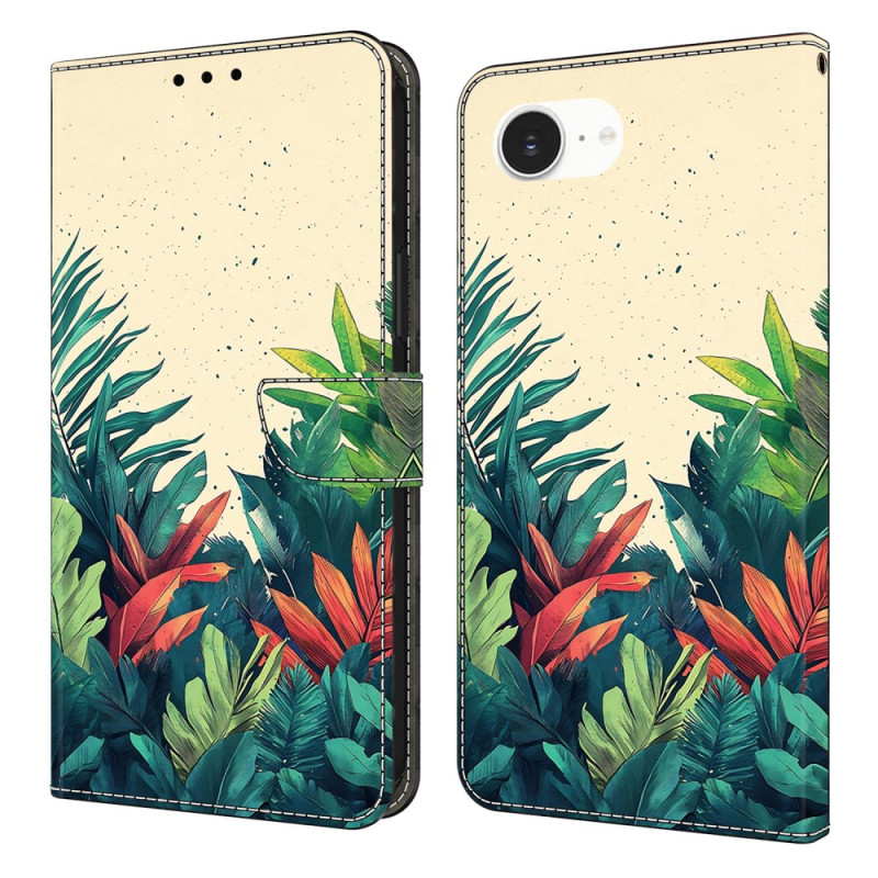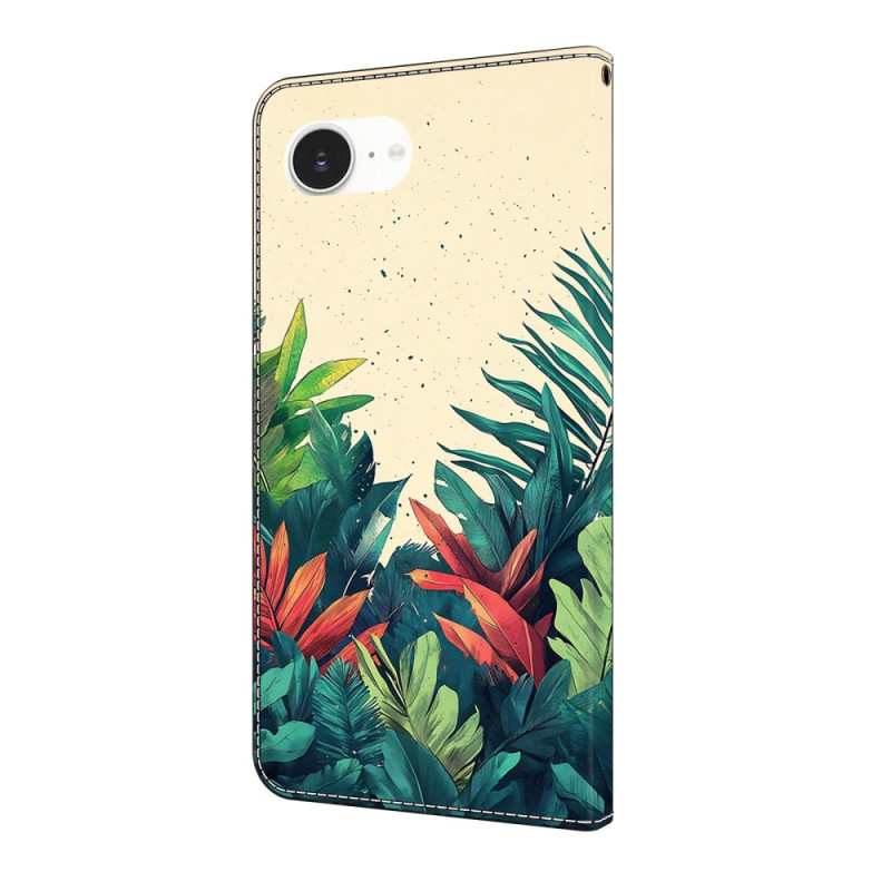 Protege tu iPhone 17E / 16E con estilo gracias a esta funda monedero con solapa con un elegante motivo de hojas. Con un práctico soporte desplegable, 2 ranuras para tarjetas y un cierre magnético seguro, combina estilo y funcionalidad para el uso diario.