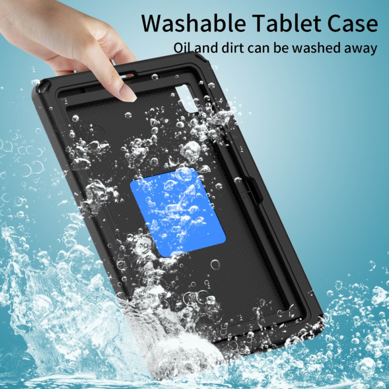 Étui de protection robuste pour tablettes Coque Lenovo Tab K10 (TB-X6C6) / M10 FHD Plus (TB-X606) avec poignée rotative à 360°, bandoulière ajustable et support intégré. Conception antichoc en EVA avec cadre renforcé pour une protection maximale au quotidien.