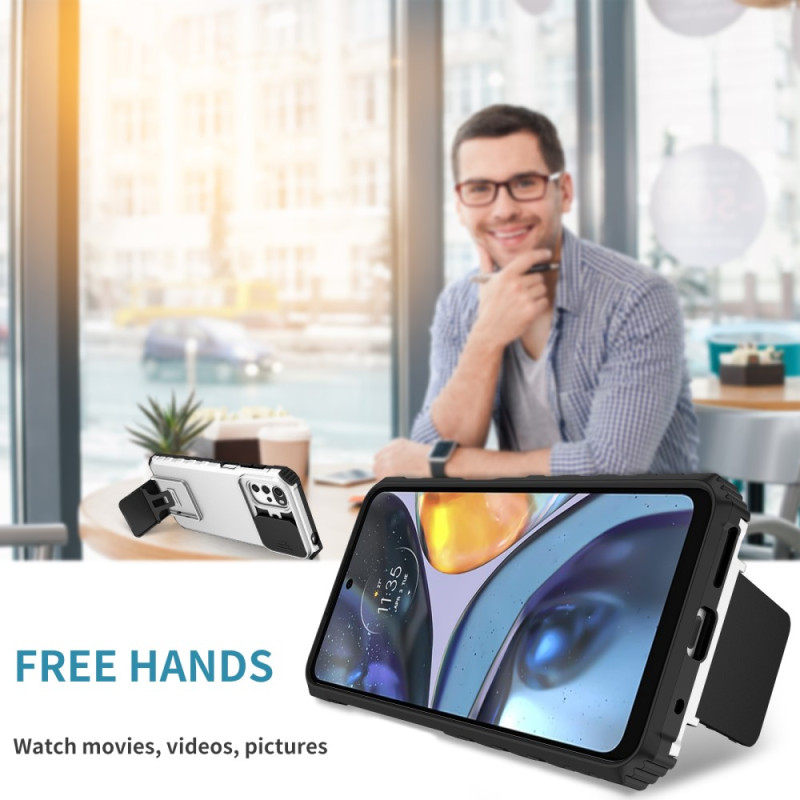 Funda Protege tu Moto G22 / E32 con esta impresionante que incluye un soporte integrado y una tapa con cremallera para el objetivo.