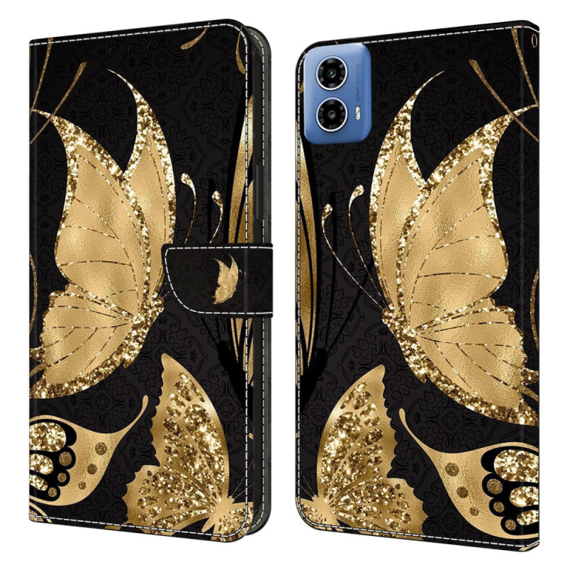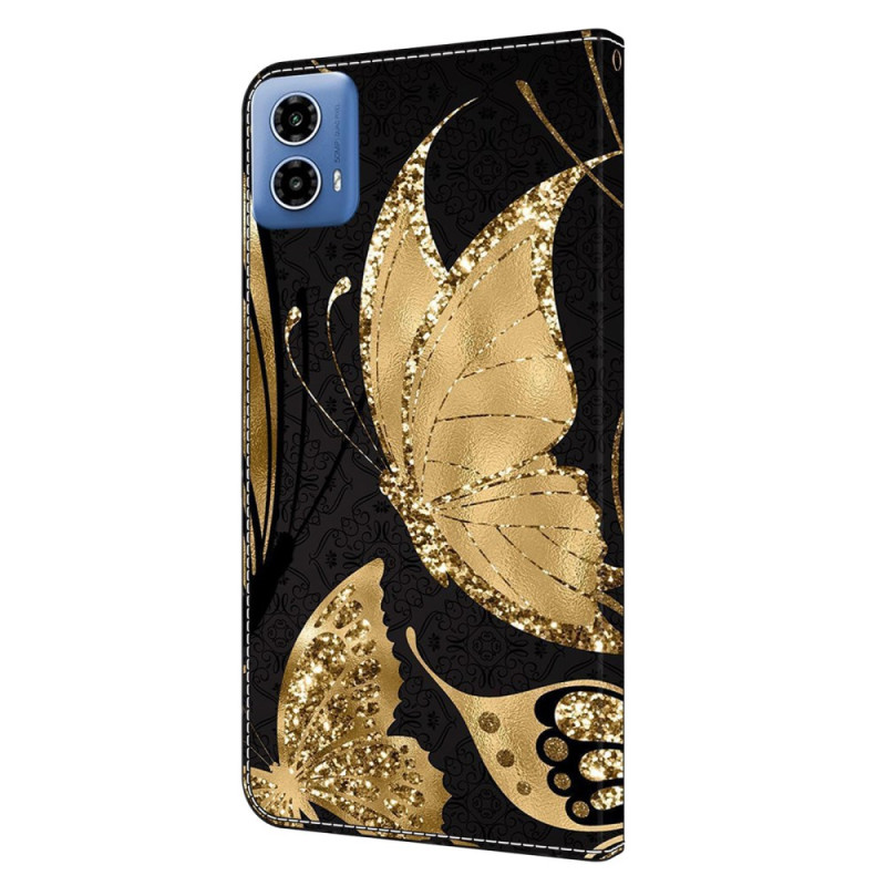 Descubra nuestra elegante funda tipo cartera para el Motorola Moto G24 Power. Combina estilo y funcionalidad, y ofrece una protección completa con su diseño de piel de PU de alta calidad y su exclusivo motivo de mariposa dorada.
