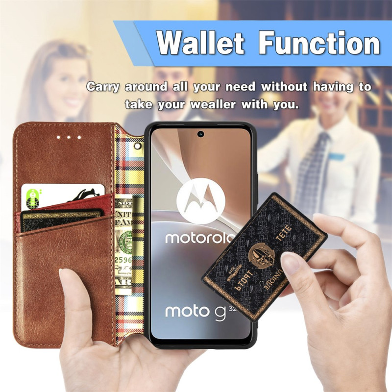 Funda Esta magnífica flip vintage con textura 3D mantendrá su Moto G32 seguro y protegido.