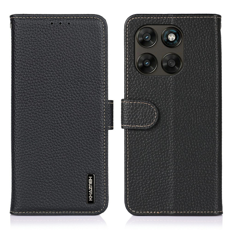 Proteja su Motorola Moto G77 5G / G67 5G con esta elegante funda tipo cartera de piel auténtica negra.