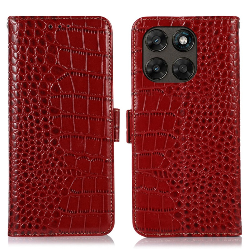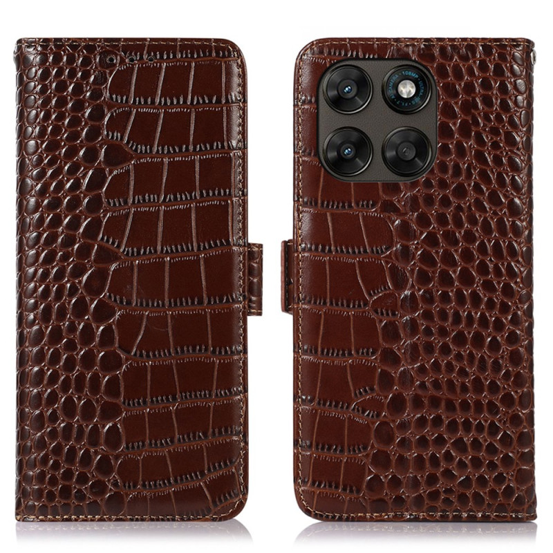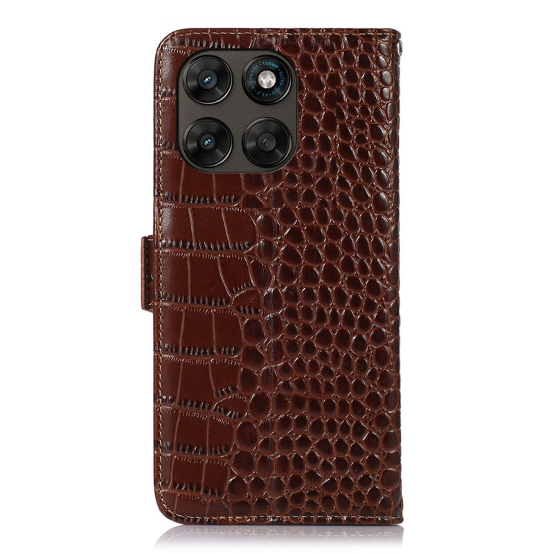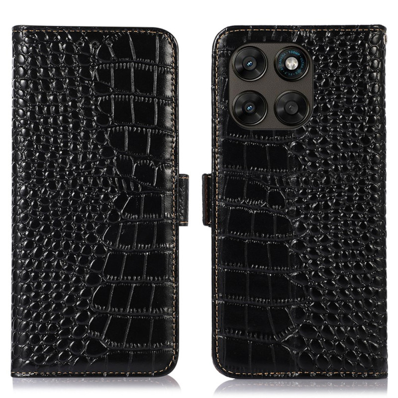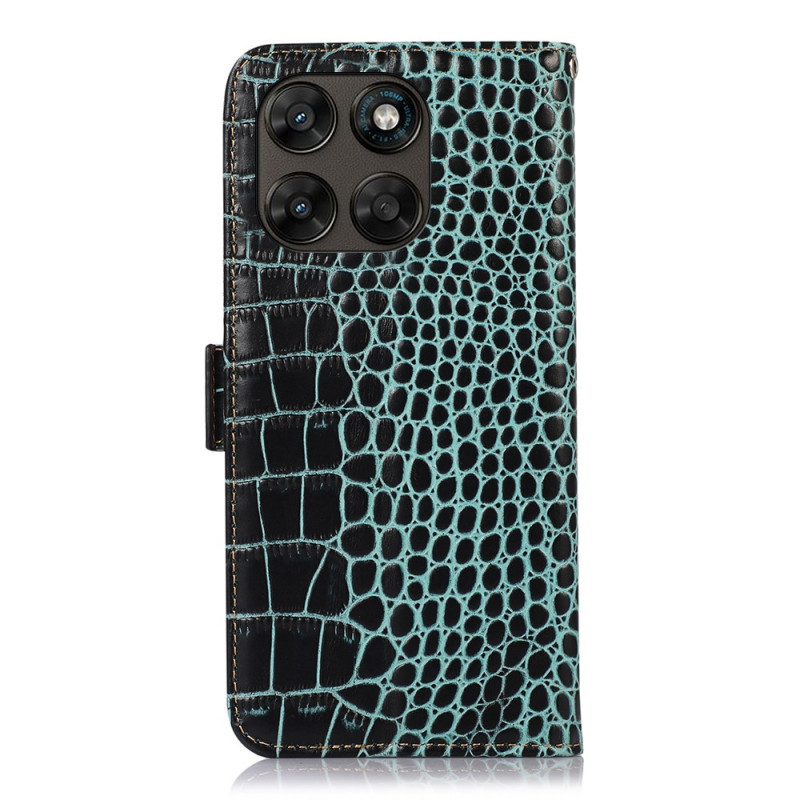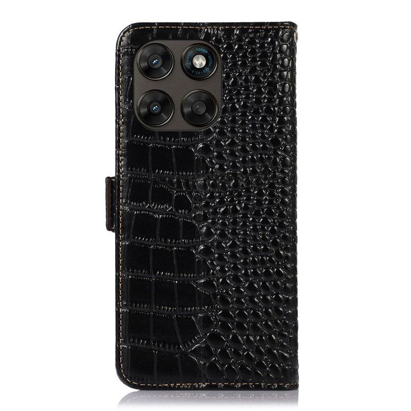 Proteja su Motorola Moto G77 5G / G67 5G con esta lujosa funda tipo cartera de piel de cocodrilo negra.