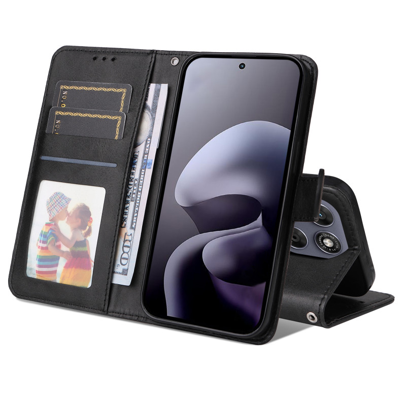 Protege tu Motorola Moto G77 5G / G67 5G con esta elegante funda de cartera negra con textura de piel de becerro.