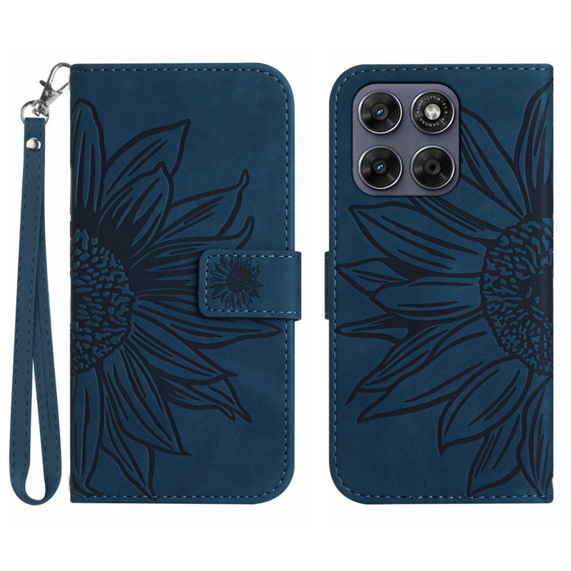 Protege tu Motorola Moto G77 5G / G67 5G con esta elegante funda de cartera con motivo de girasol en rojo vino.