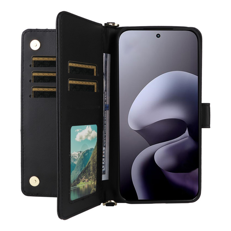 Práctico, incluye 6 tarjetas, un bolsillo para billetes, un bolsillo para fotos y un soporte manos libres plegable.