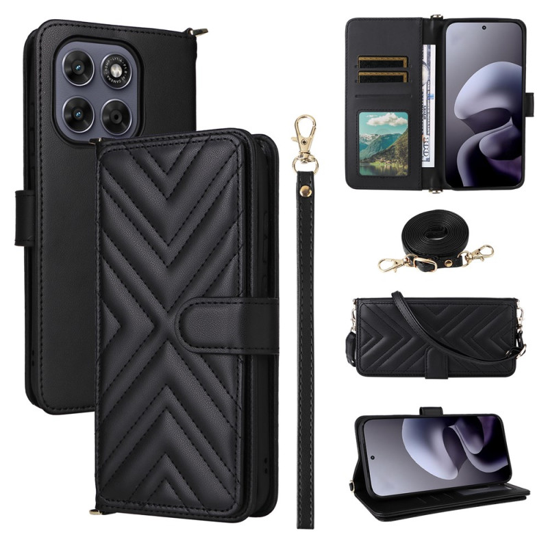 Protege tu Motorola Moto G77 5G / G67 5G con esta funda rosa tipo cartera con práctica colgante