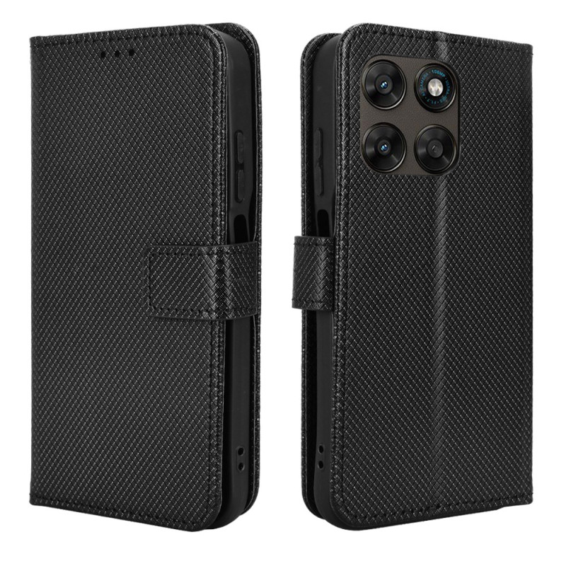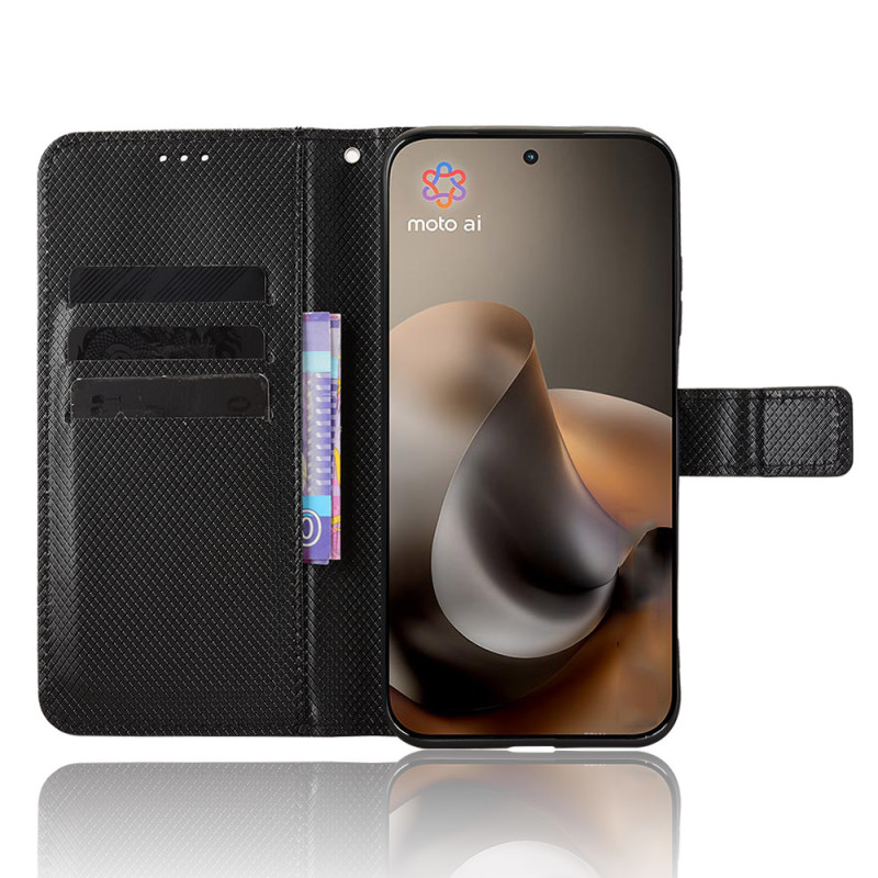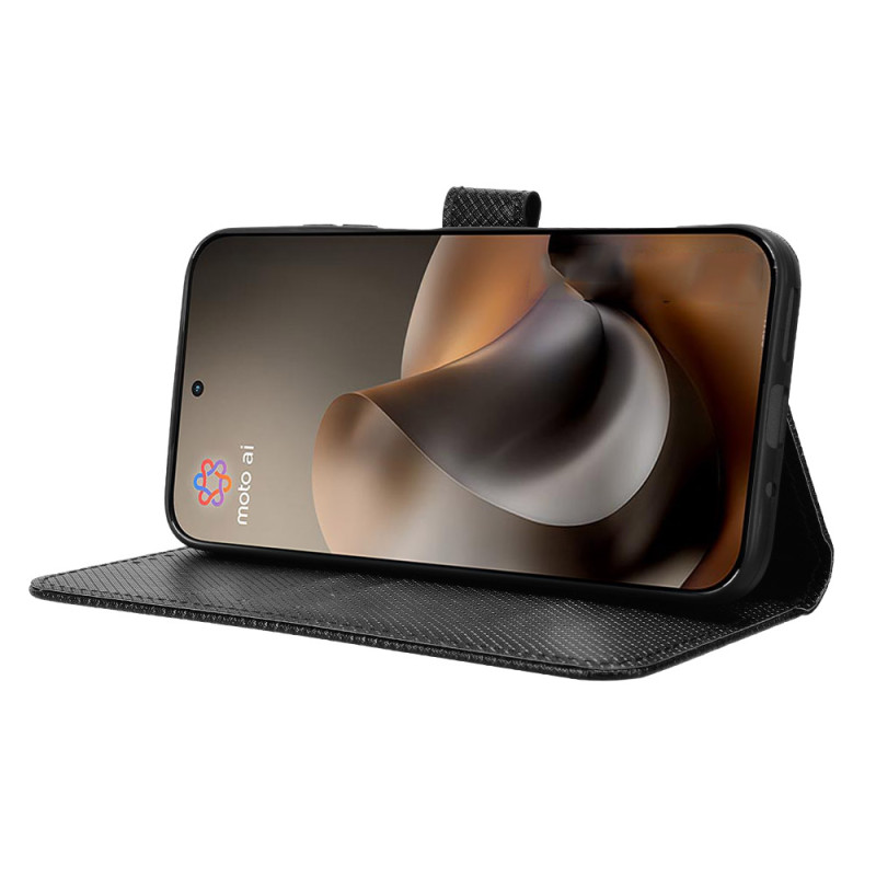 Añade un toque de estilo a tu Motorola Moto G77 5G / G67 5G con esta funda de cartera negra con textura de diamante.