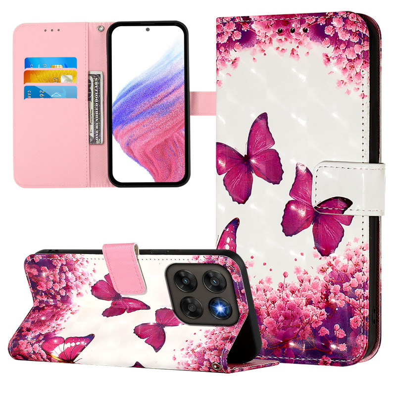 Añade un toque femenino a tu Motorola Moto G77 5G / G67 5G con esta elegante funda de mariposa rosa.