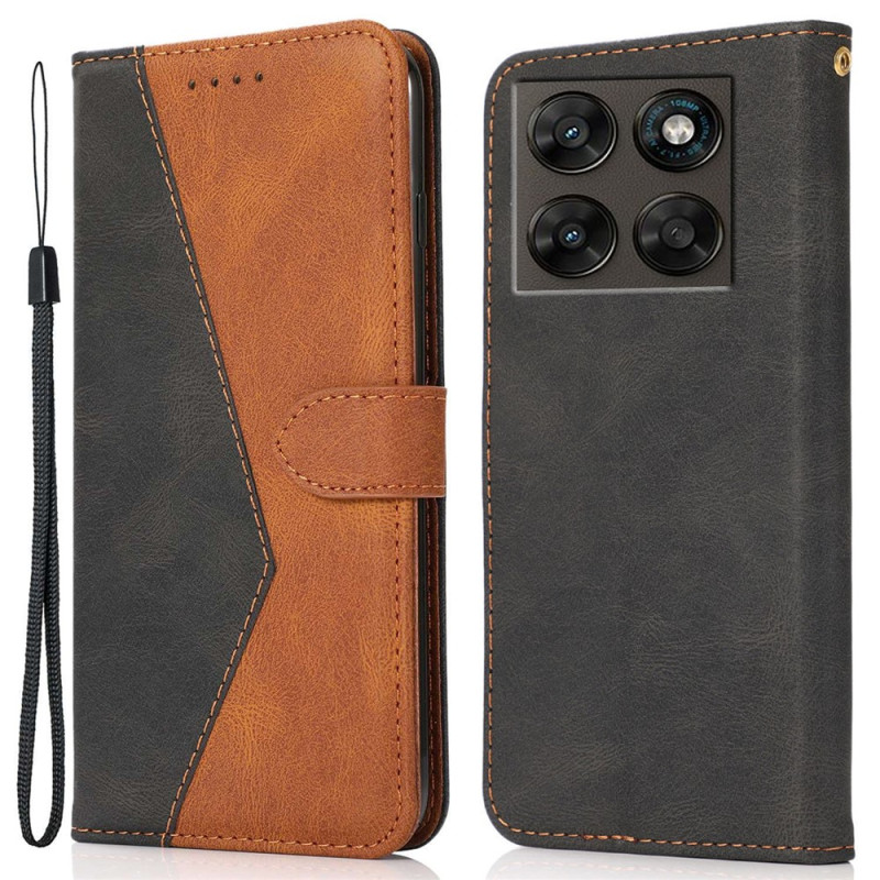 Adopta un estilo moderno con esta funda bicolor en negro y marrón para Motorola Moto G77 5G / G67 5G.
