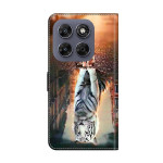 Haz una declaración de estilo con esta original funda con motivos de gato y tigre para Motorola Moto G77 5G / G67 5G.