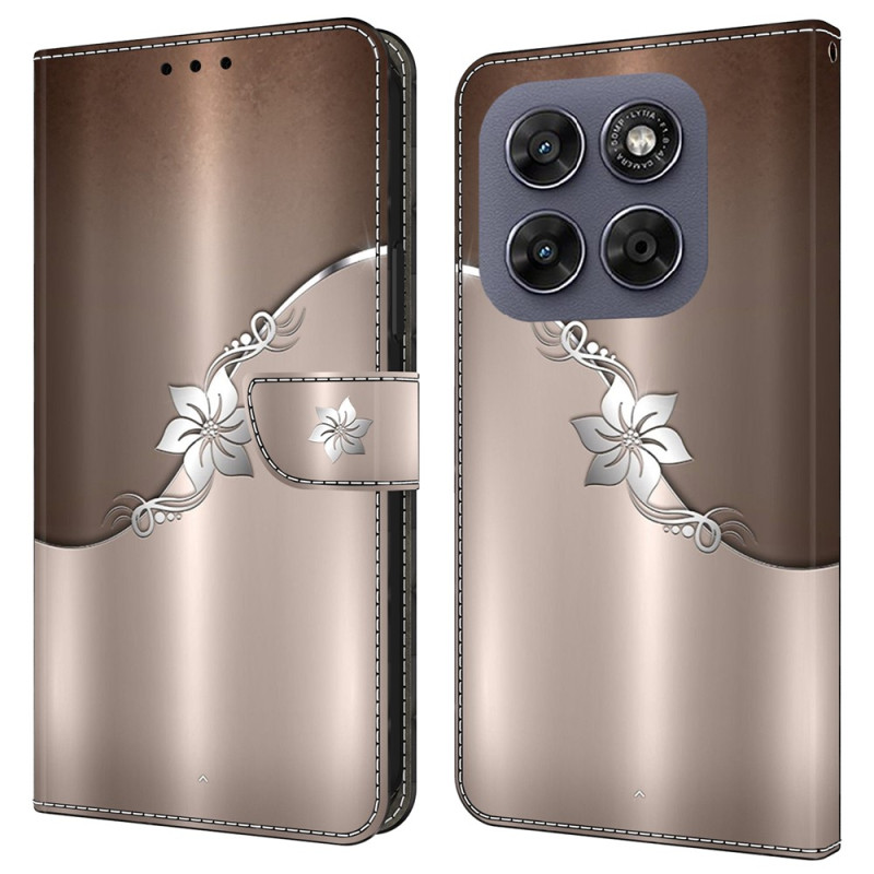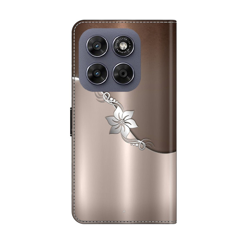 Añade un toque refinado a tu Motorola Moto G77 5G / G67 5G con esta funda plateada con motivos florales.