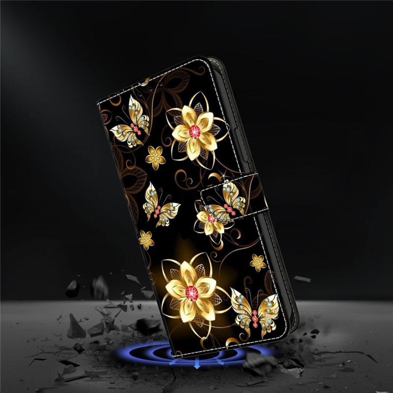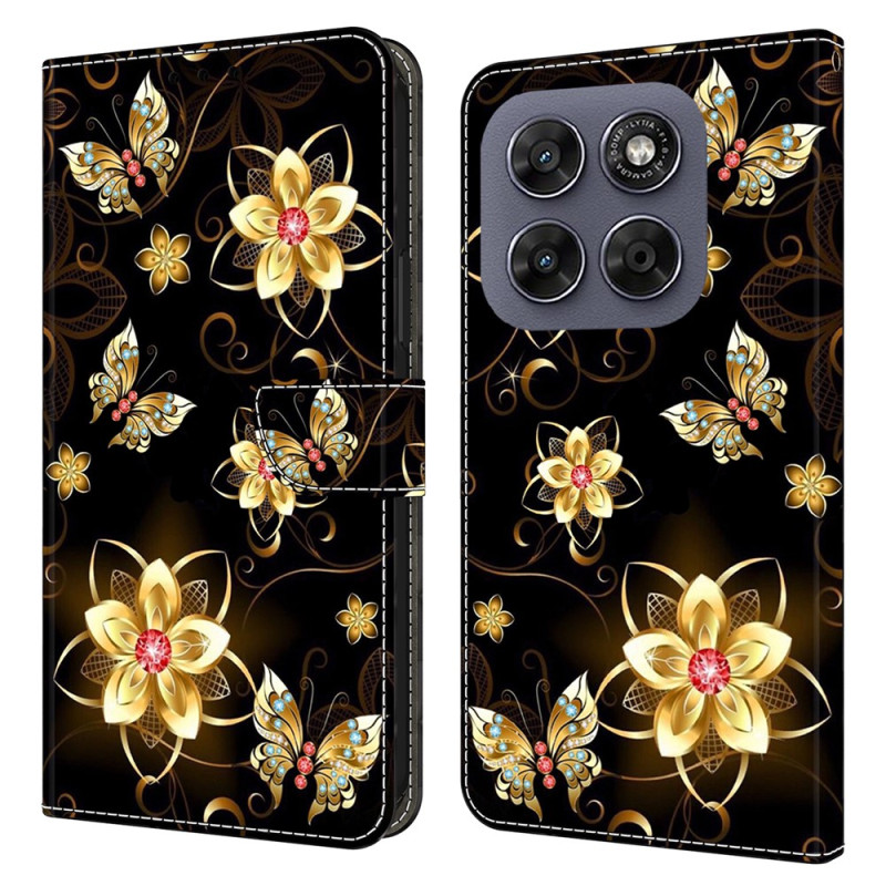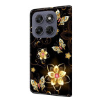 Mejora tu Motorola Moto G77 5G / G67 5G con esta funda de flores y mariposas doradas de bonito diseño.