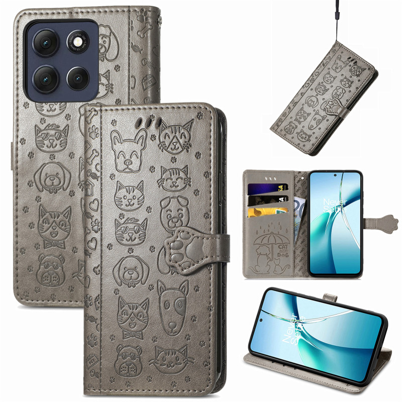 Añade un toque juguetón a tu smartphone con esta funda de gato y perro para el Motorola Moto G67 / G77 5G.