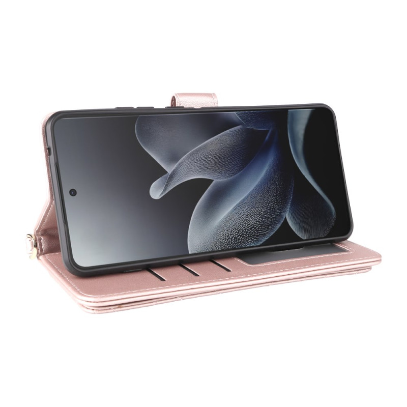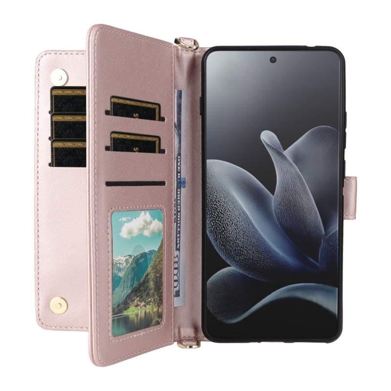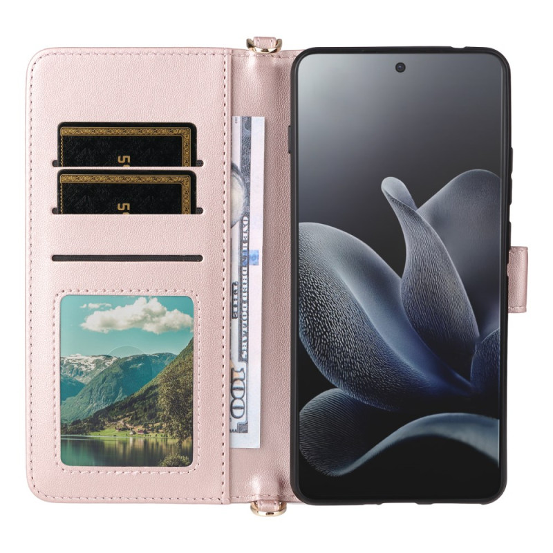 Étui portefeuille élégant pour Motorola Edge 70 5G avec support réglable, 6 emplacements pour cartes et fermeture magnétique sécurisée. Livré avec dragonne amovible et bandoulière ajustable pour un transport pratique au quotidien.