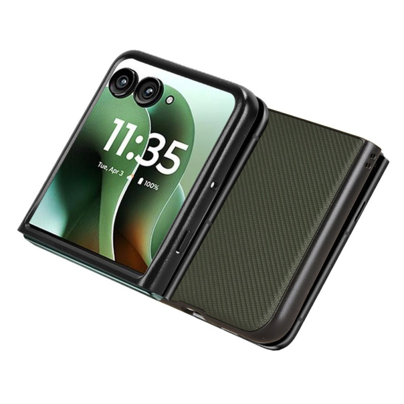 Su diseño con textura de fibra de carbono combina estilo y funcionalidad, garantizando un agarre cómodo y resistente a las huellas dactilares.