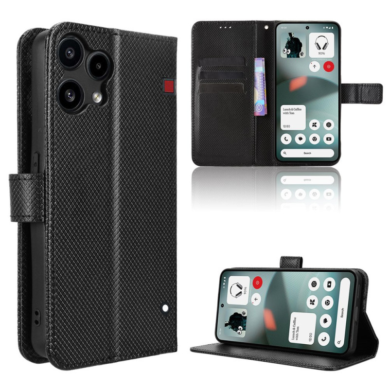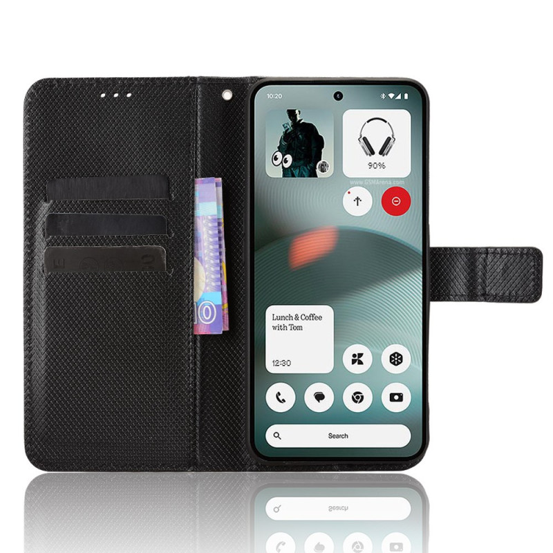 Protege tu Nothing Phone (3a) Lite 5G con estilo gracias a esta funda cartera de piel de PU con textura de diamante. Con ranuras para tarjetas, un bolsillo para notas, un soporte plegable y una práctica colgante de muñeca para un uso diario óptimo.