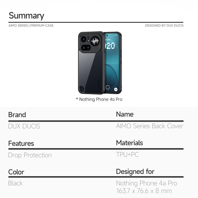 Elige una protección fiable y certificada con esta funda Dux Ducis Aimo Series para Nothing Phone (4a) Pro.