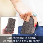 Los compartimentos integrados mantienen las tarjetas y notas a mano.