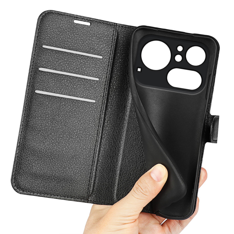 La solapa se convierte en un soporte para tener las manos libres, mientras que el cierre magnético lo asegura todo.