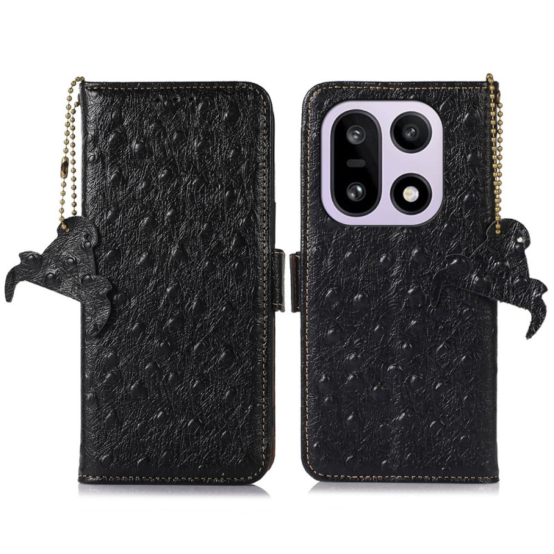 Descubre esta elegante funda cartera de piel de vacuno auténtica con textura de avestruz para tu OnePlus 15 5G. Con tecnología de bloqueo RFID, protege tus tarjetas bancarias a la vez que ofrece un práctico almacenamiento con 2 ranuras para tarjetas, 1 bolsillo para fotos y 1 compartimento para efectivo.