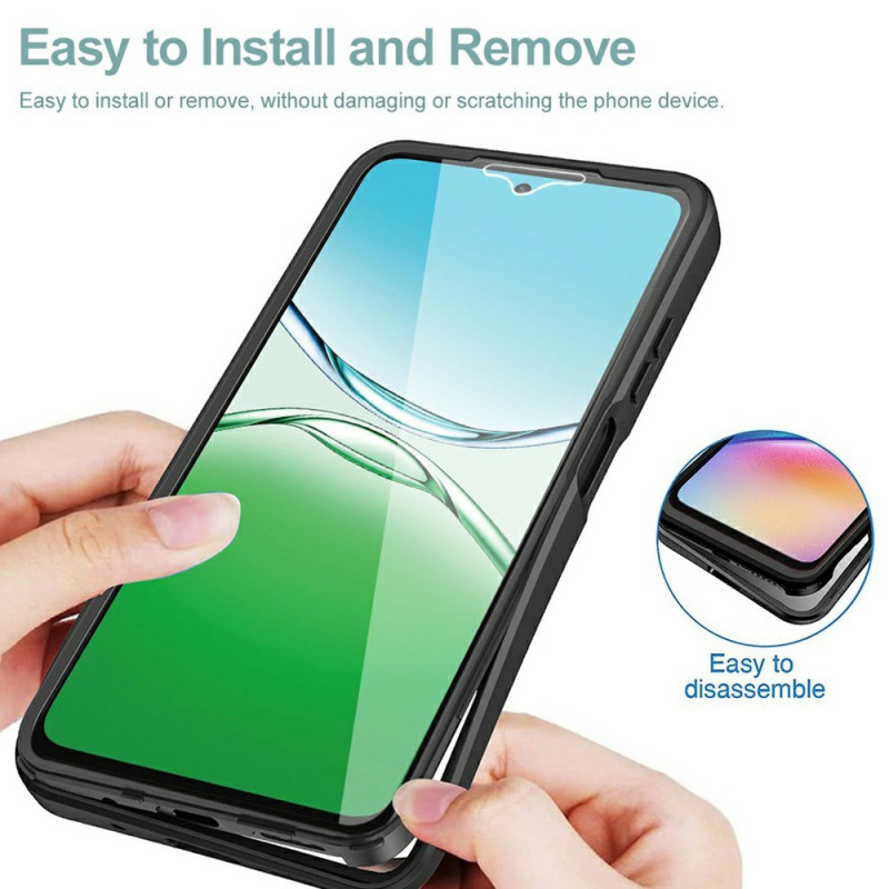 Protege tu Oppo A5 5G con esta funda transparente que ofrece una protección completa de 360 grados. Su diseño en dos partes incluye un protector de pantalla integrado y bordes elevados para una protección óptima de la cámara.