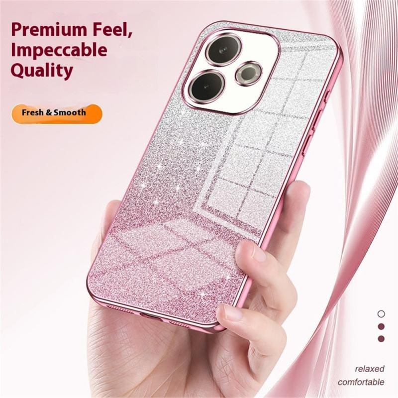 Protege tu Oppo A5 Pro 5G / 4G con estilo gracias a esta funda de TPU con acabado de purpurina degradada y bordes galvánicos. Diseño glamuroso, protección óptima y acceso preciso a todas las funciones de tu smartphone.