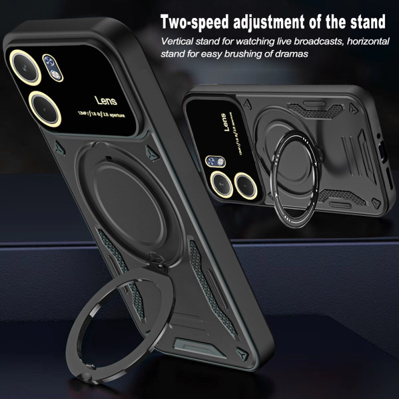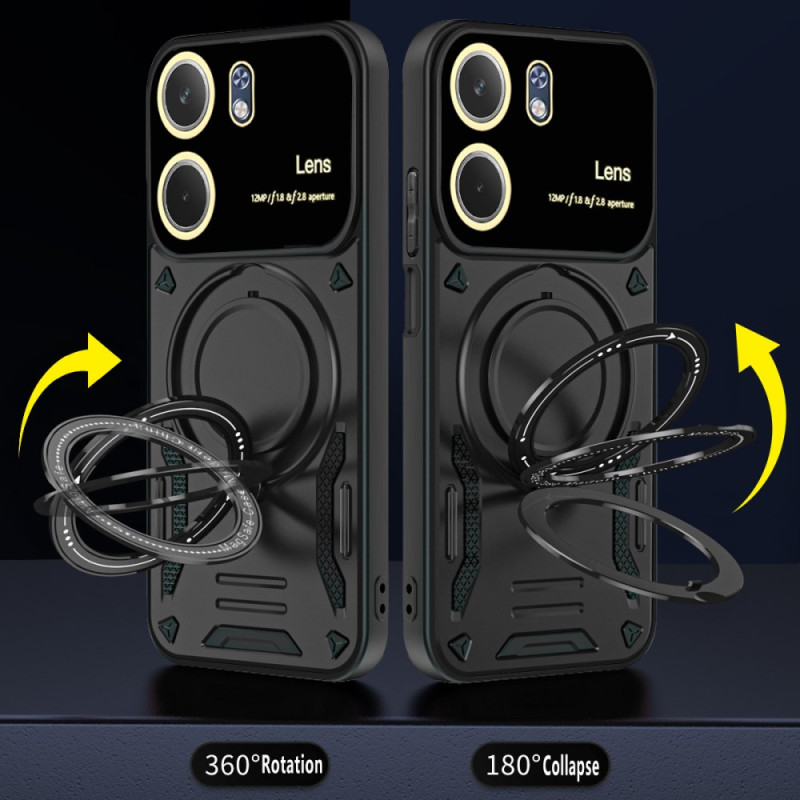Protege tu Oppo A5X con esta robusta funda con soporte magnético giratorio integrado. Compatible con MagSafe, combina PC y TPU para una protección óptima contra golpes y arañazos. Disfruta de visualización manos libres y carga inalámbrica.