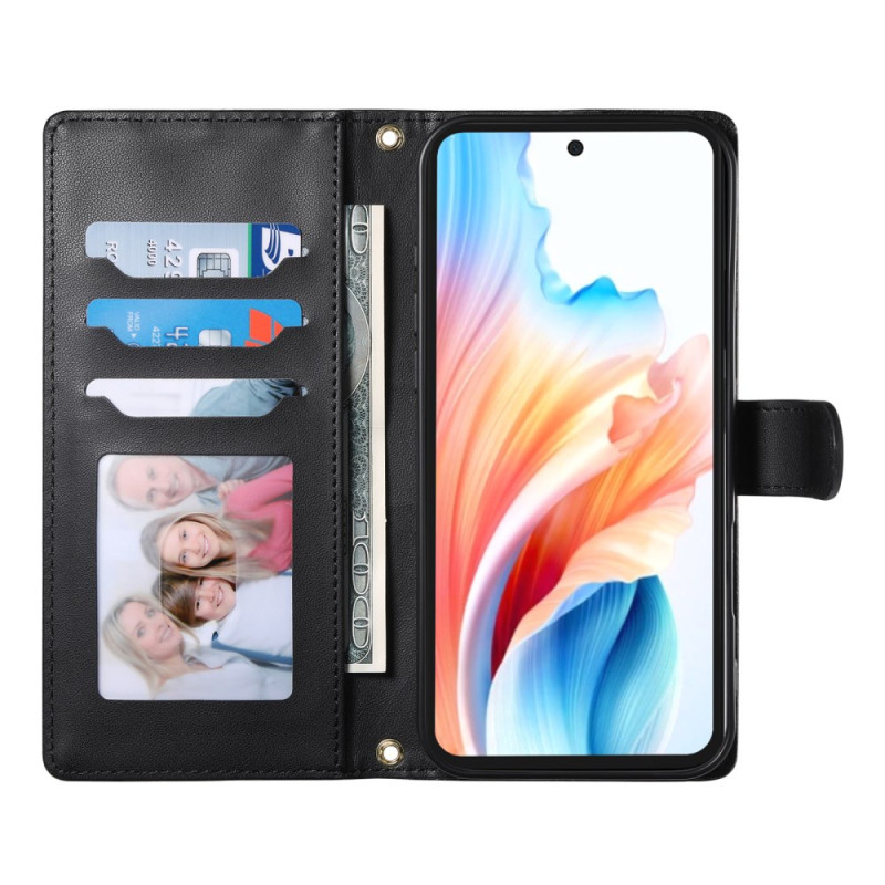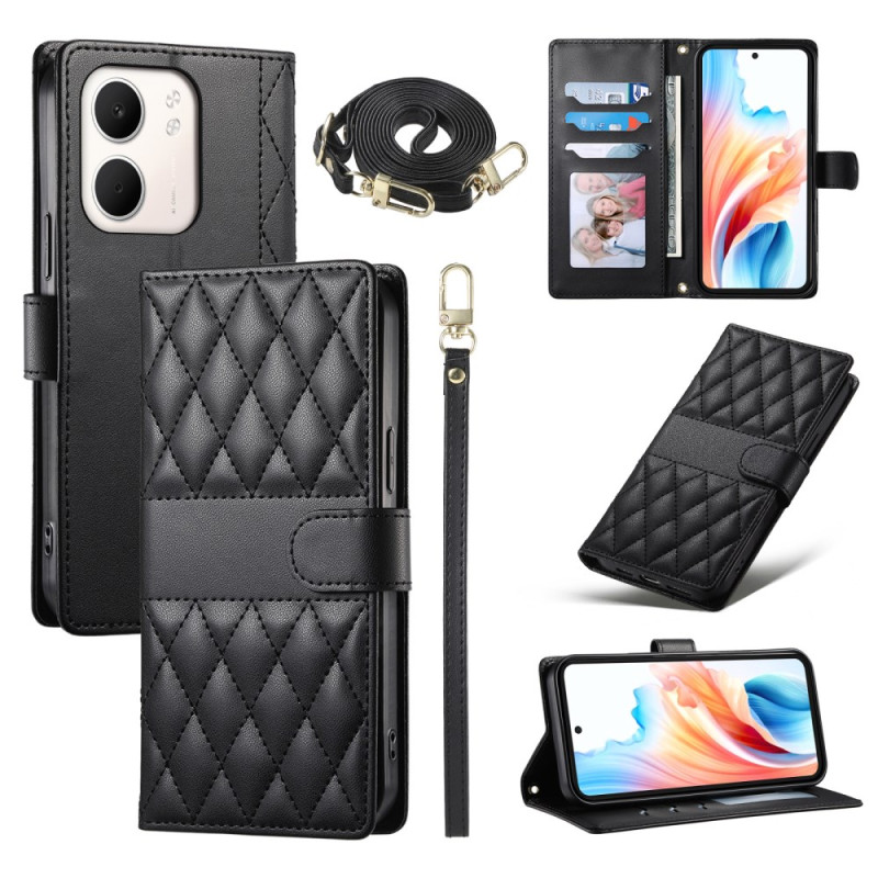 Protege tu Oppo A5X 4G con estilo gracias a esta elegante funda tipo cartera. Sofisticado diseño acolchado, 3 ranuras para tarjetas y bolsillo para efectivo. Función de soporte integrada para ver tu contenido. Viene con colgante de muñeca y bandolera desmontables.