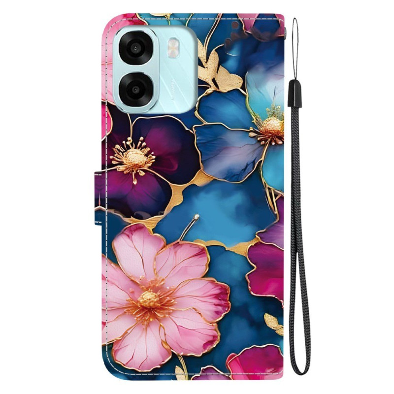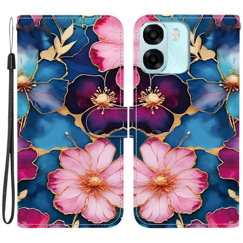 Protege tu Oppo A6 5G / A6X 5G / 4G con estilo gracias a esta funda cartera con motivos florales en azul y dorado.