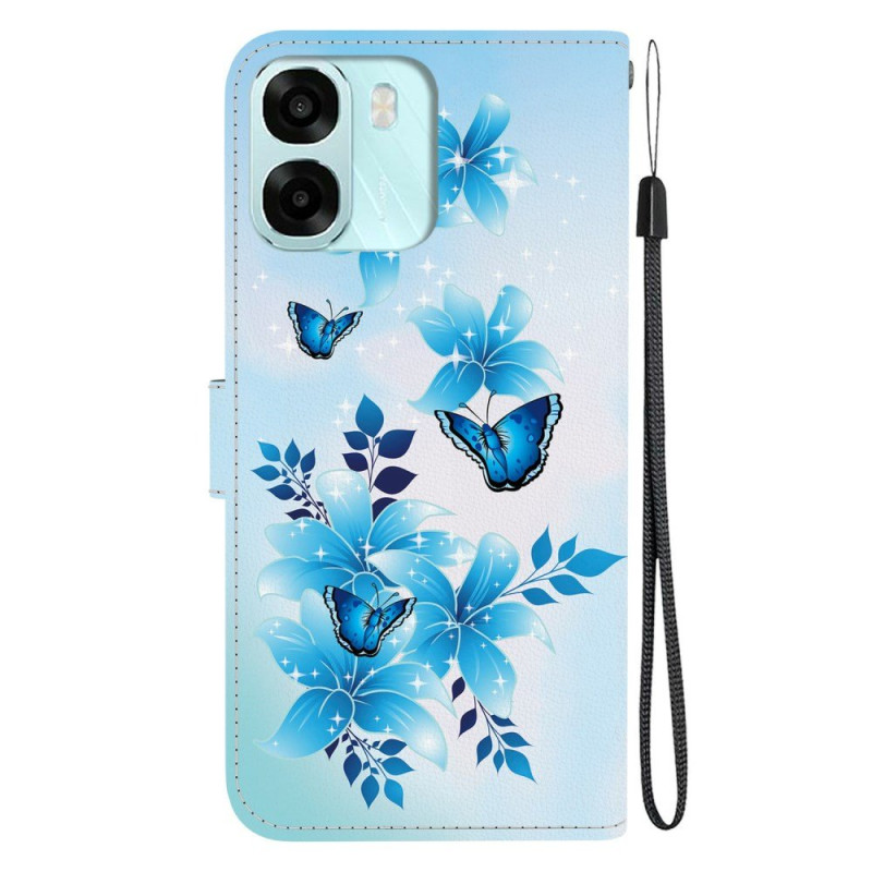 Proteja su Oppo A6 5G / A6X 5G / 4G con estilo con esta funda tipo cartera con estampado de mariposa azul.