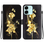 Combinando estilo y practicidad, esta funda cartera para el Oppo A6 5G / A6X 5G / 4G presenta un motivo de mariposa dorada sobre fondo rosa.