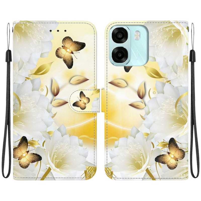 Combinando estilo y practicidad, esta funda cartera para el Oppo A6 realza tu smartphone con su estampado de mariposas doradas.